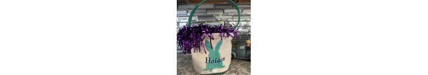 Personalize your easter basket with your custom embroidered name. These are great baskets for the little ones and to be able to use from year to year. This is a sample and this particular basket is NOT FOR SALE. Please select one of the other options based off of the color you would like. Note: Color...
